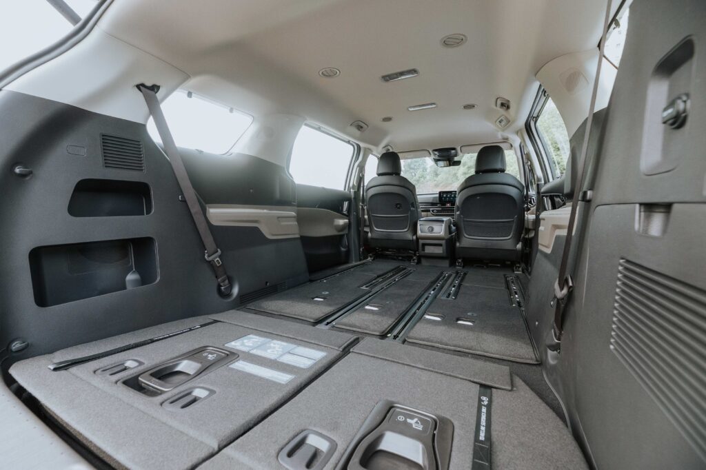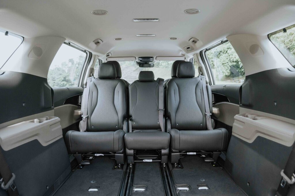 內裝及座椅調整方面,采用2+3+3形式,第二排座椅可完全拆除及左右滑動,同時也可轉至後方,形成面对面形式,第二排座椅則可以60:40的折叠方式呈现。